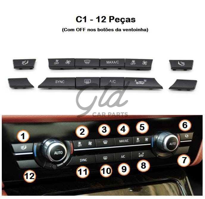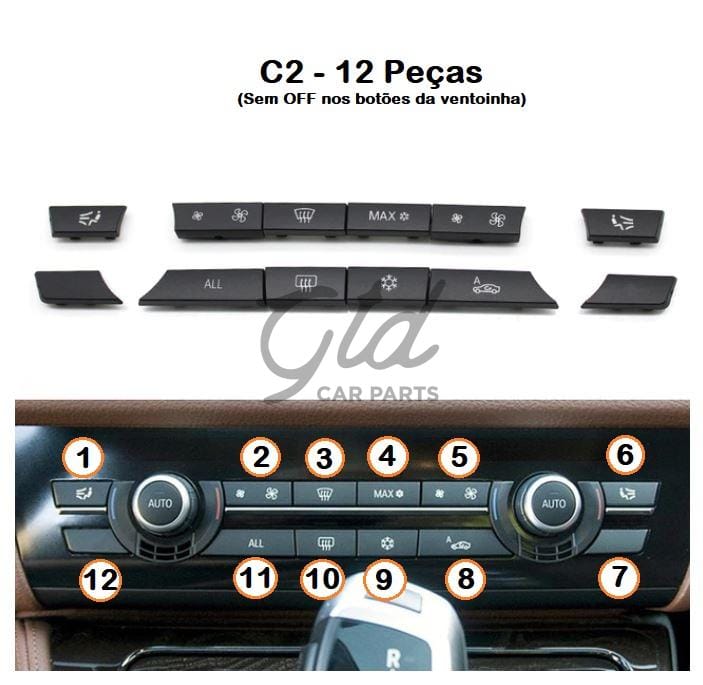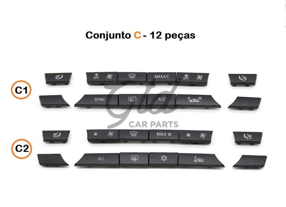 Diferença entre Modelo B e C - Versão B tem botões para bancos aquecidos, versão C não tem botões para bancos aquecidos